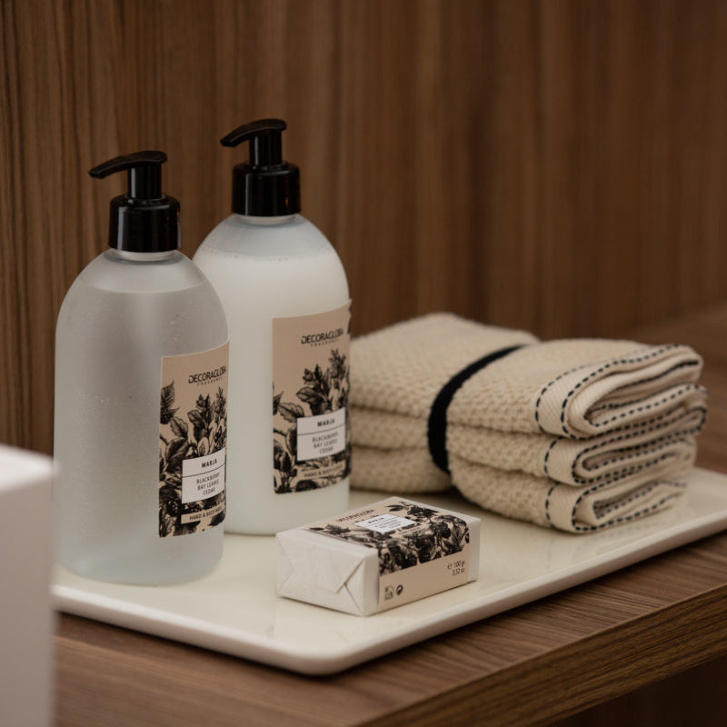 Disfruta de la frescura y elegancia del jabón Marja para manos y cuerpo, una experiencia de cuidado que revitaliza piel y sentidos.