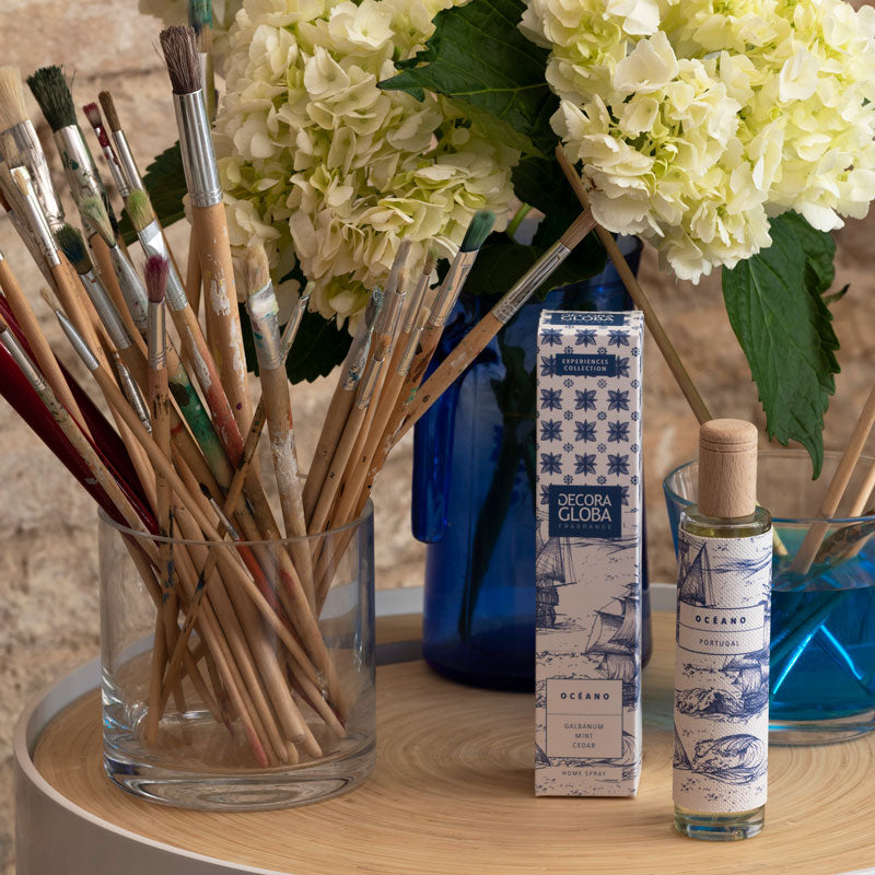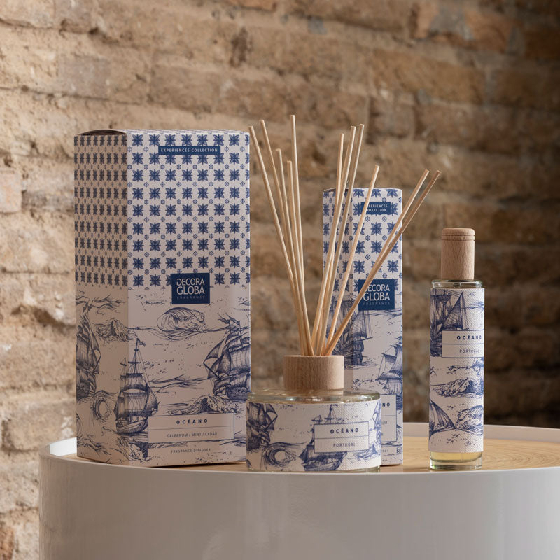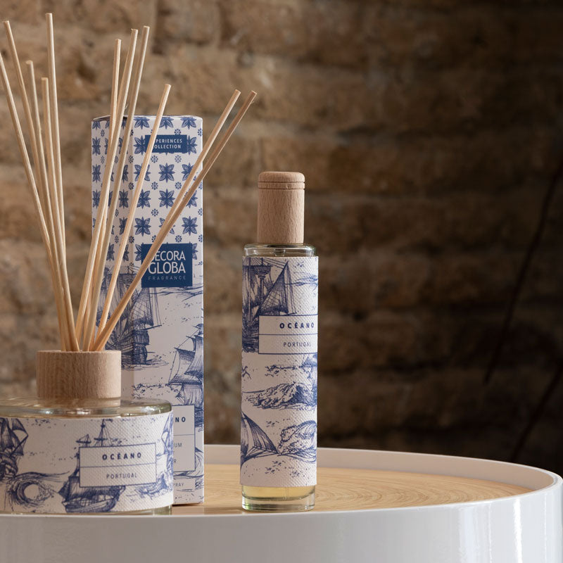 Difusor en spray con fragancia oceánica, verde y amaderada. Para aromatizar fácil y rápidamente tus estancias.