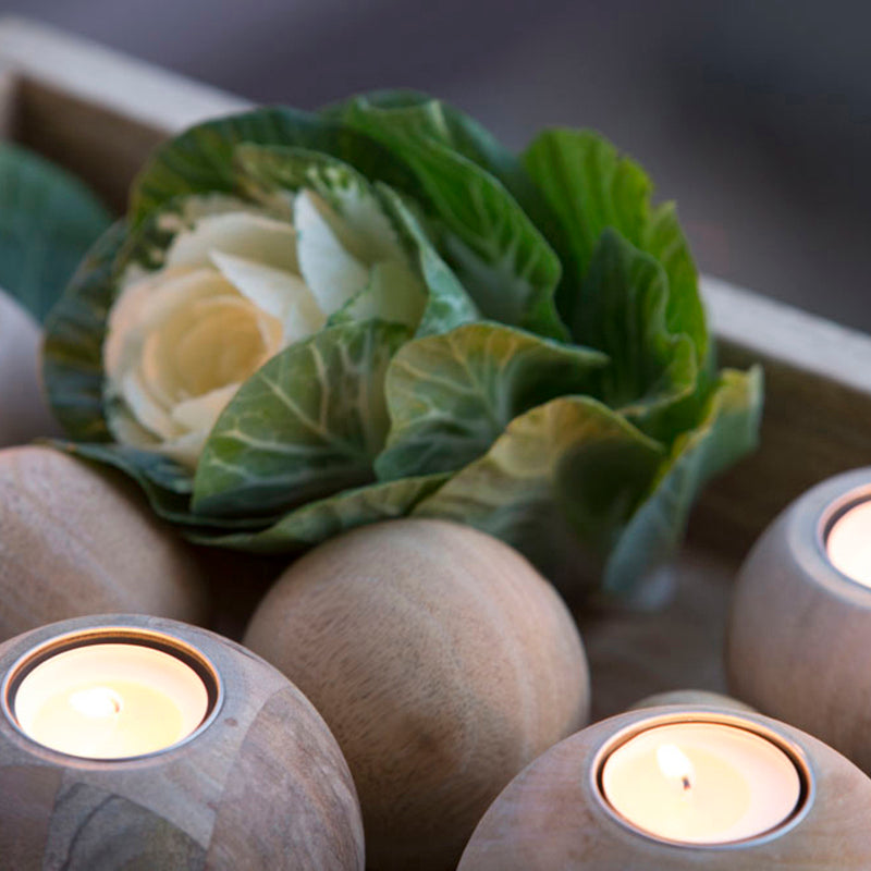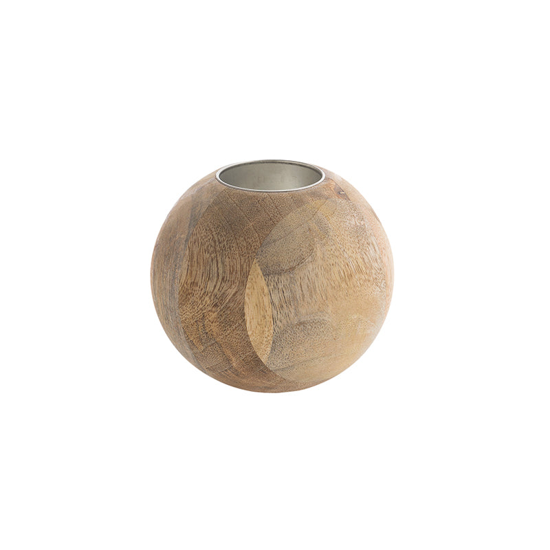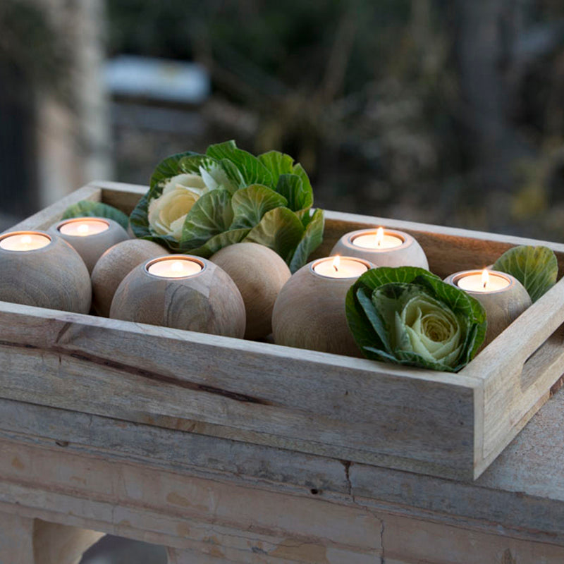 Portavelas de madera para velas de té con forma circular. La madera, con su toque natural y acogedor, potencia la calidez de la luz de la vela. Su forma redondeada aporta estilo y distinción a cualquier rincón o celebración.