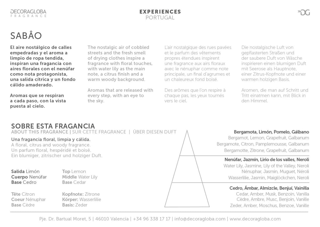 El aroma a limpio de ropa tendida inspira esta fragancia con aires florales con el nenúfar como nota protagonista, una salida cítrica y un fondo cálido amaderado.