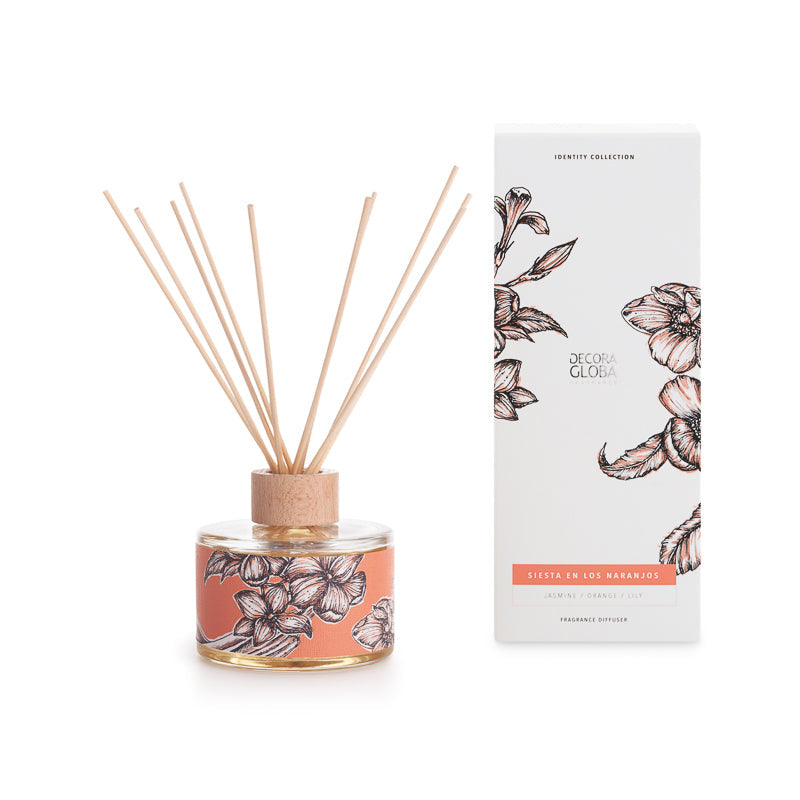 Difusor mikado con fragancia a flor de naranjo para aromatizar de manera uniforme tus estancias.